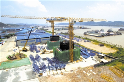 7 月23日,记者拍摄的伍家岗长江大桥施工现场,目前北岸主塔上、下游侧塔柱均完成两节(6.3米)施工。该桥南起江城大道,主线全长2.813公里。主桥采用1160米悬索桥方案,桥宽31.5米,设计时速60公里。(三峡日报记者 王昌明,通讯员 李竣青 摄)