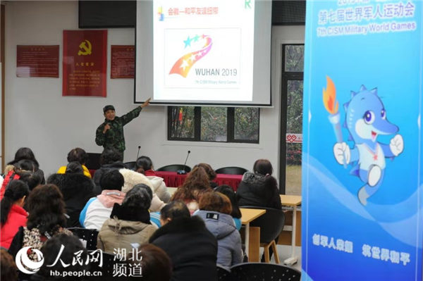 退役军人为居民宣讲军运会知识
