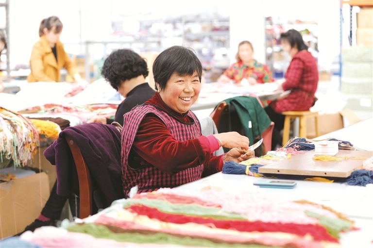 4月11日,夷陵区太平溪镇许家冲村移民创业中心,宜昌沁邑民俗文化公司一片繁忙,几名移民正在赶制布艺饰品。