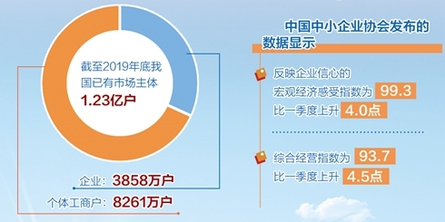 到2019年底,我国已有市场主体1.23亿户,其中企业3858万户,个体工商户8261万户。这些市场主体是我国经济活动的主要参与者、就业机会的主要提供者、技术进步的主要推动者,在国家发展中发挥着十分重要的作用。