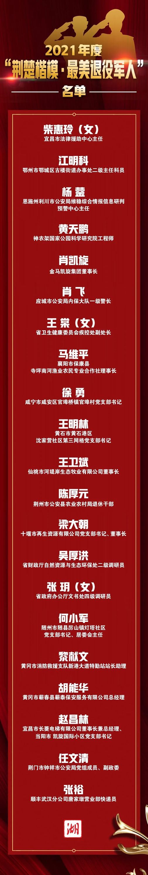 2021年度“荆楚楷模·最美退役军人”人物名单