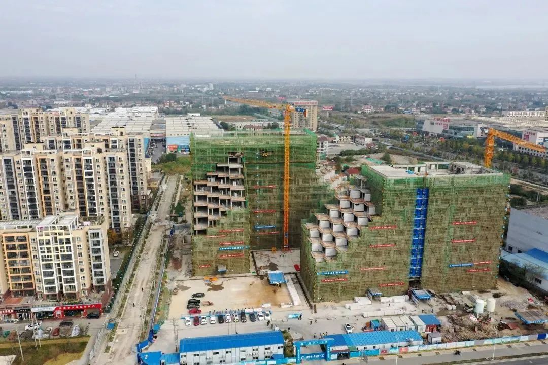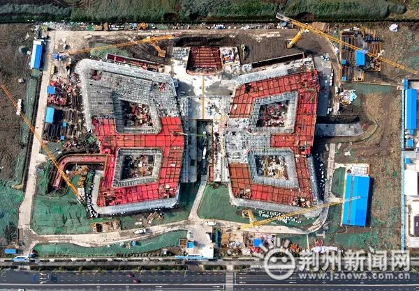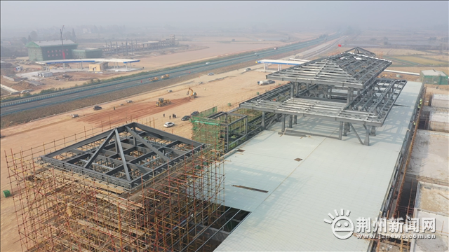 荆州区科创园公共服务基地(一期)工程项目距离荆州高铁站1.8公里,位于发展大道以北,家居路以南,荆州大道以西,荆安小路以东。目前该项目从外观上来看,阶梯外形已经初见雏形。