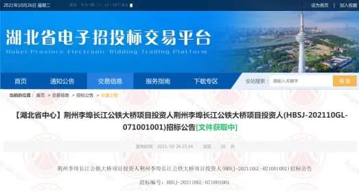 荆州李埠长江公铁大桥2021年10月26日,湖北省电子招投标交易平台挂出荆州李埠长江公铁大桥项目投资人招标公告,这标志着李埠长江公铁大桥建设即将启动,荆州将新增一条过江通道。