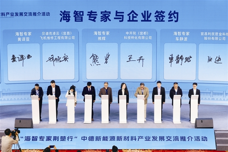 “海智专家荆楚行”中德新能源新材料产业发展交流推介活动现场,海智专家与企业签订合作协议。三峡日报全媒记者 王昌明 摄