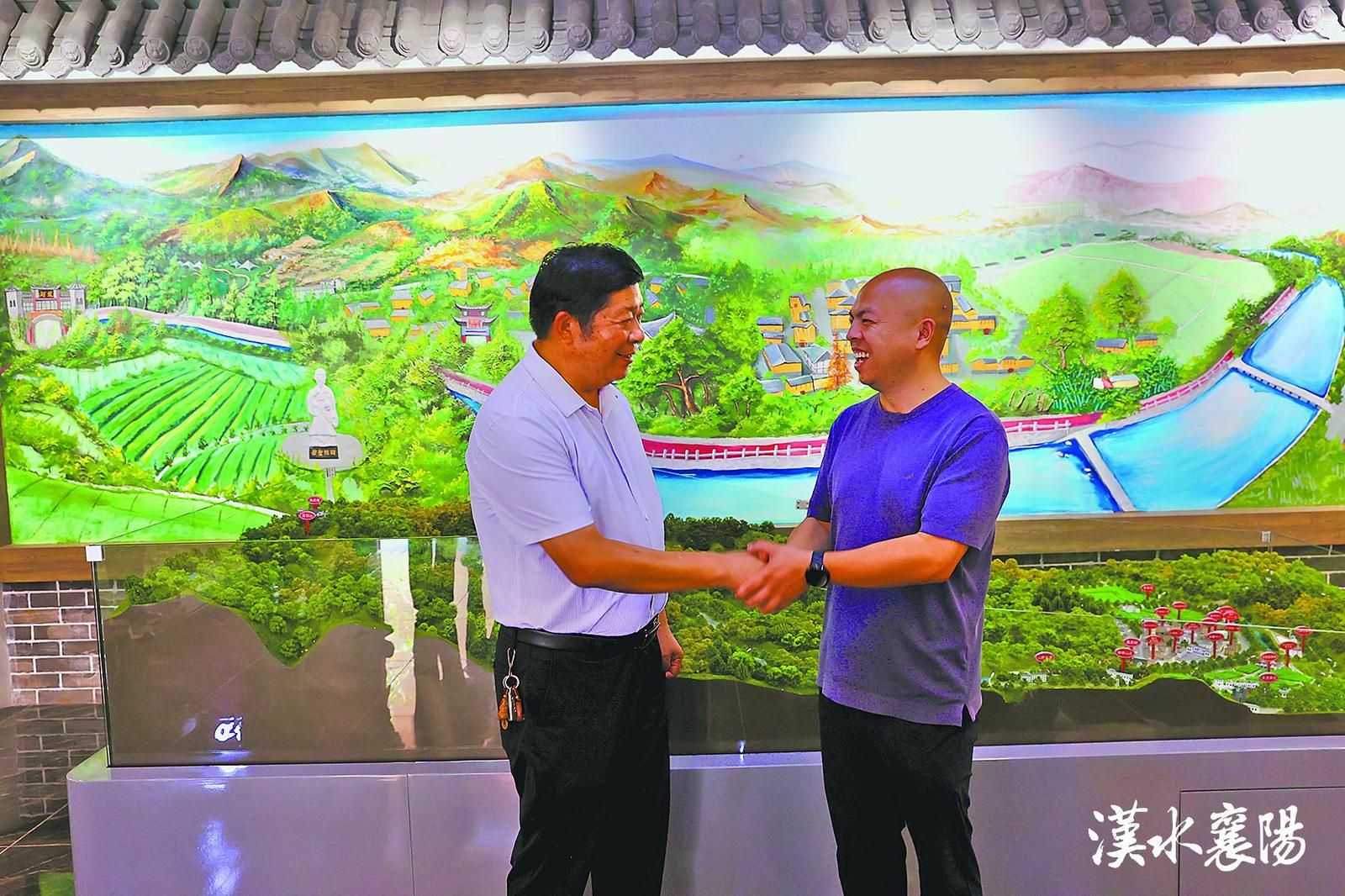 浙江余村牵手谷城堰河,跨越千里奔赴“共富”之约。(左为堰河村党委书记闵洪艳,右为余村村党支部书记汪玉成)