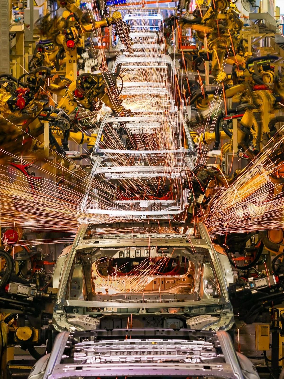 2025年上半年岚图汽车累计销量达56128辆,同比增长85%。图为岚图生产线上焊花飞溅。长江日报城市摄影队陈亮 摄
