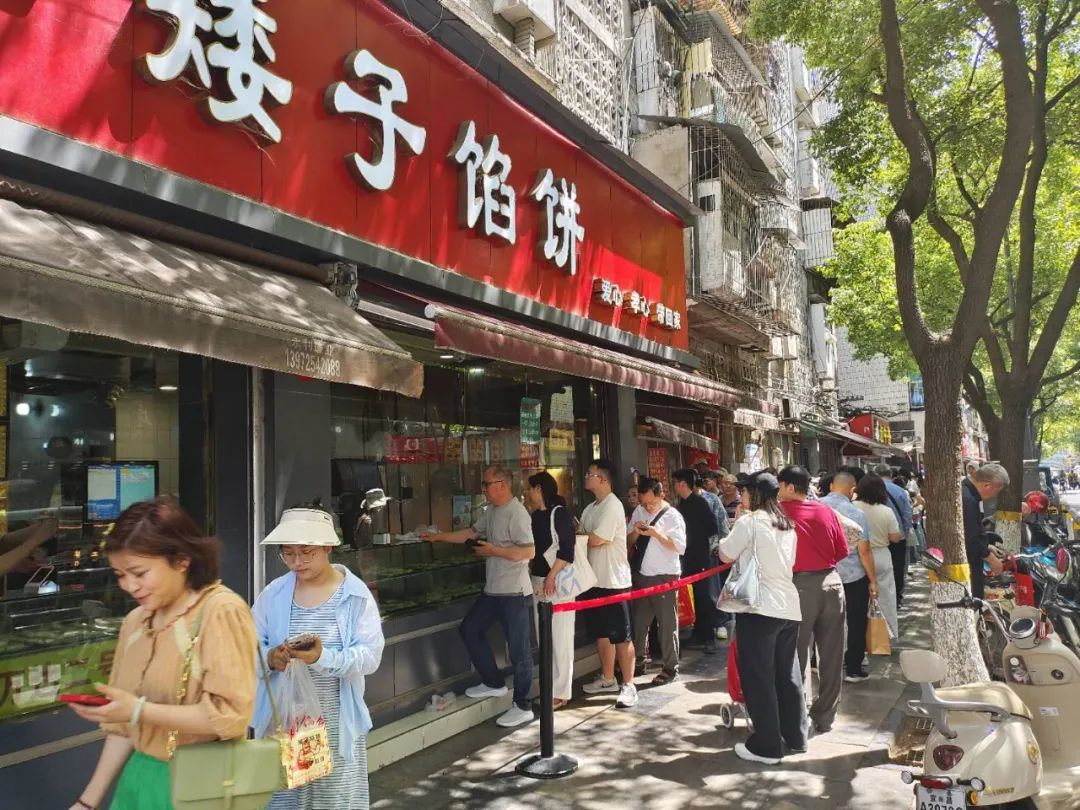 在一间占地面积不大、门匾上挂着“矮子馅饼”招牌的中式点心铺前,排队的长龙蜿蜒,食客们顶着高温,只为品尝来自中国的“非遗酥饼”。有人拍下视频发到社交平台,配文写道:“荆门特产,终于吃上了!”
