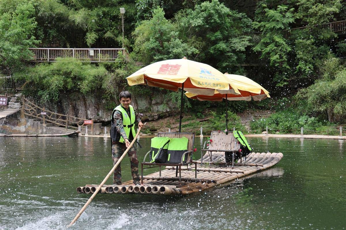 今年,受电影《哪吒之魔童闹海》启发,张建武又推出“哪吒踏青”实景体验:游客乘竹筏穿越“东海龙宫”,在“陈塘关”体验非遗剪纸,品尝地道“五山八大碗”。