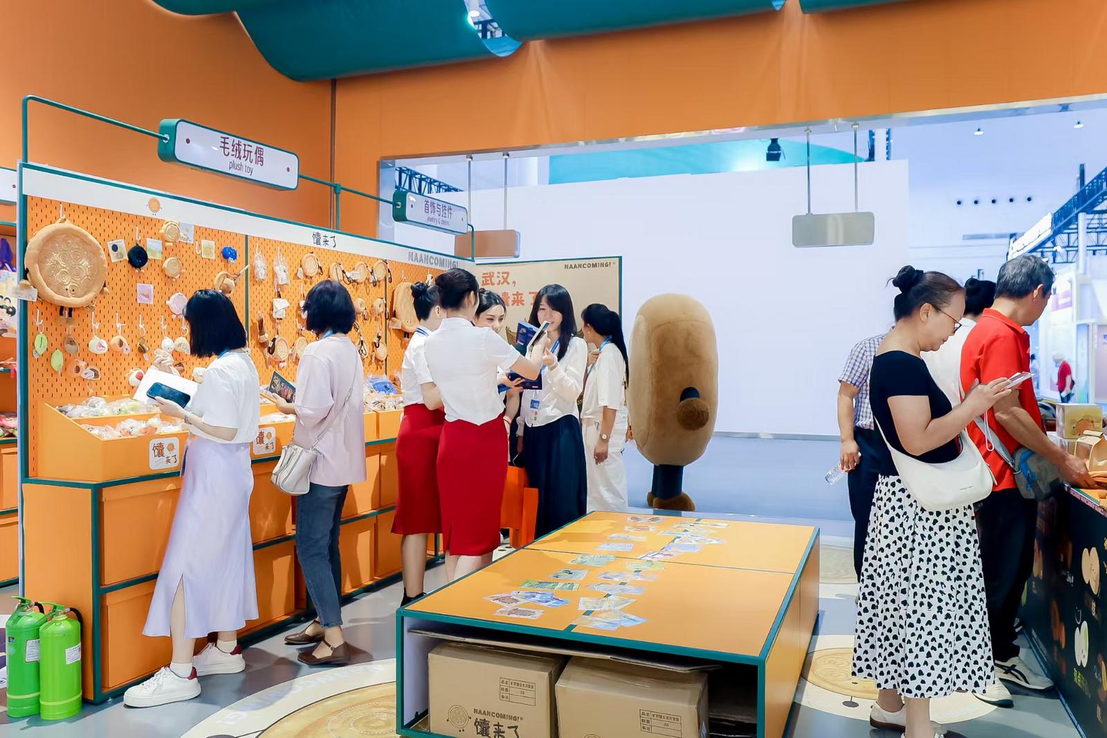 开展首日,以明孝端皇后凤冠为原型的金属冰箱贴开售40分钟后即售罄,成为展会现象级爆款。此外,江南三大名楼立体冰箱贴两天狂销5000枚,湖北本土的蒜鸟文创一天补货两次……几家“顶流”文创展区前都围满了年轻的观众,工作人员的POS机一直在响。
