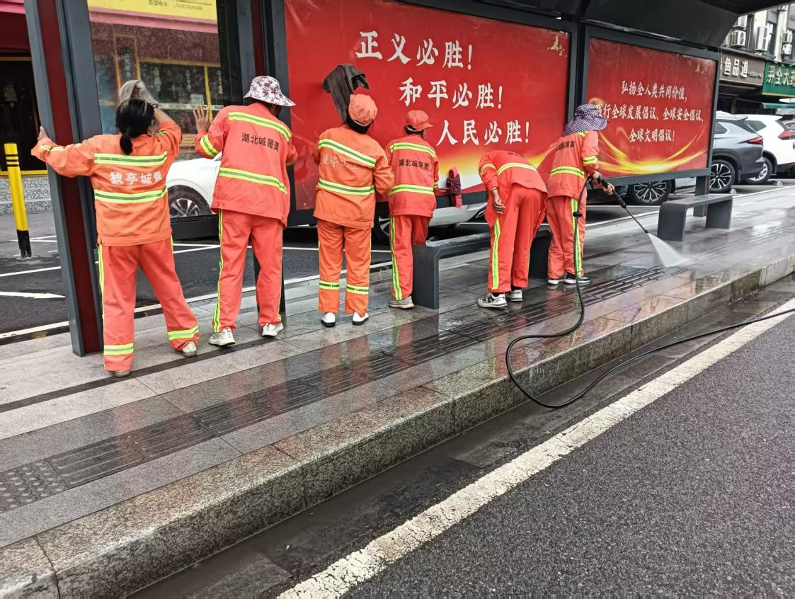 湖北城晟美高新区分公司白洋片区为进一步做好环境卫生工作,提前开展大扫除活动,突出主次干道及环卫设施清洗擦拭、卫生死角薄弱区进行“拉网式”排查整治,对人行道、绿化带可视范围内开展人工排查,清除隐藏烟头纸屑等精细化保洁作业,全力提升道路整洁度。在日常巡回保洁作业的基础上,对车流量大的路段增加保洁人员及作业频次,采取人机配合、机械车辆组合的作业模式对主次干道进行全方位高压冲洗、洗扫作业,彻底消除路面积尘,提高道路洁净度。同时,针对施工易污染路段增加冲洗频次,常态化保持路面干净整洁。
