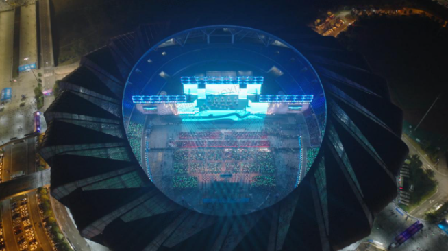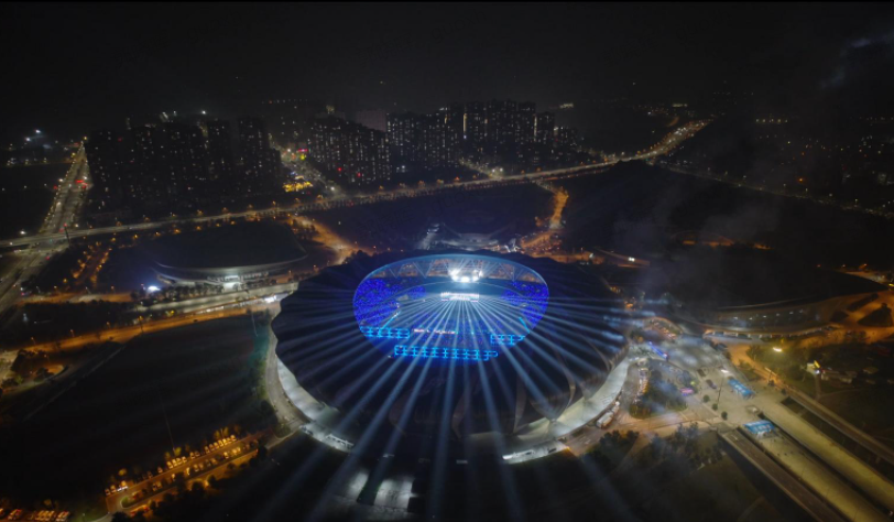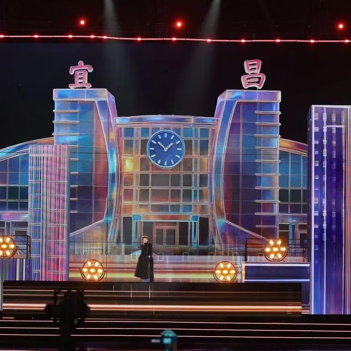 现场以“高峡出平湖 光影绽未来”核心理念、三峡大坝为原型,构建了总跨度达150米的巨型舞台。“正值中国电影诞生120年,我们希望借这场设计与创意,展现中国电影如长江般的蓄势与奔流。”舞美总设计郑博道出初心。