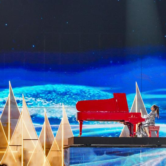 宜昌市青少年宫鸽子花少儿艺术团百名团员等携手“小酒窝”高舒乔共同演绎《光辉》,纯净童声涤荡夜空。艺术团领队李伶俐透露,孩子们历经两个月排练,“只为在家门口展现宜昌风采”。小团员李芊诺眼中闪烁光芒:“这次经历让我更加勇敢!”