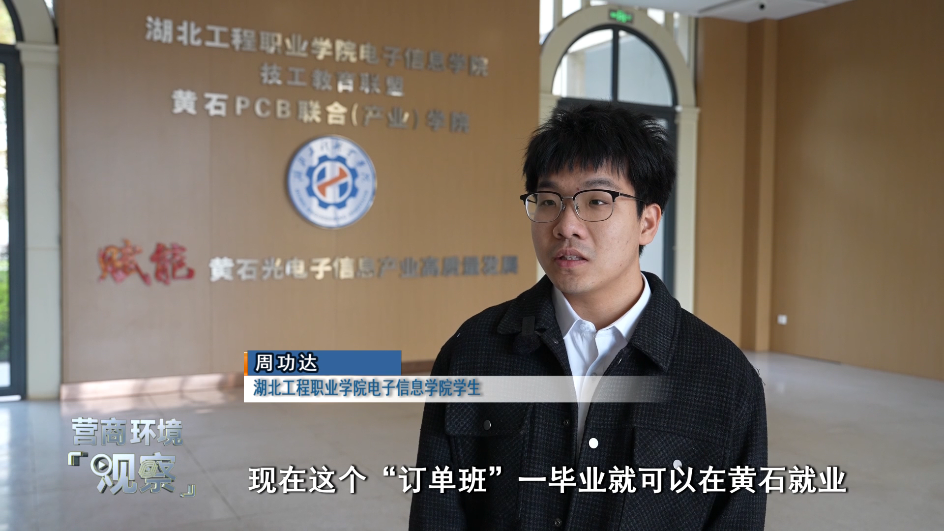 湖北工程职业学院电子信息学院学生 周功达:原来觉得大专学历工作不是那么好找,需要到沿海地区去就业,现在这个“订单班”一毕业就可以在黄石就业,前景和待遇都不错,感觉心里更踏实了。
