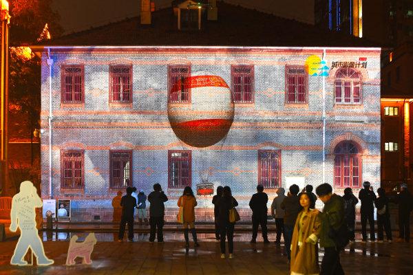 “武汉·有艺思”主题光影秀在江岸平和坊广场上演,吸引众多市民游客驻足。长江日报记者胡冬冬 摄