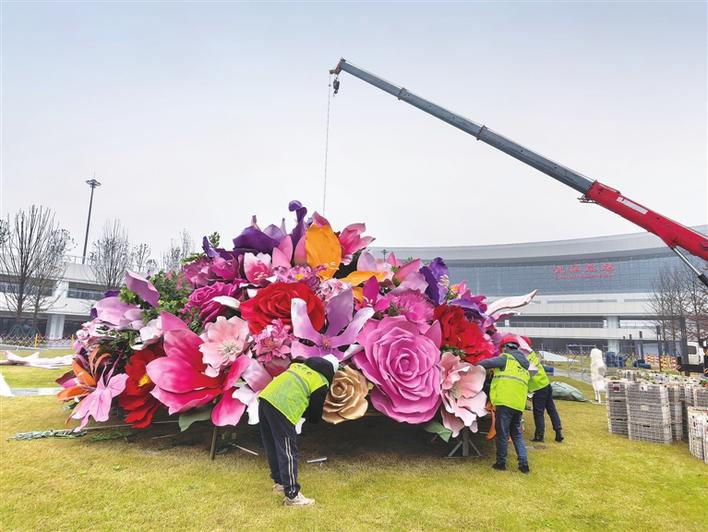 随着宜昌北站通车进入倒计时,一组主题为“筑梦新程,宜启未来”的大型绿雕正抓紧施工,近日将在车站广场亮相。
