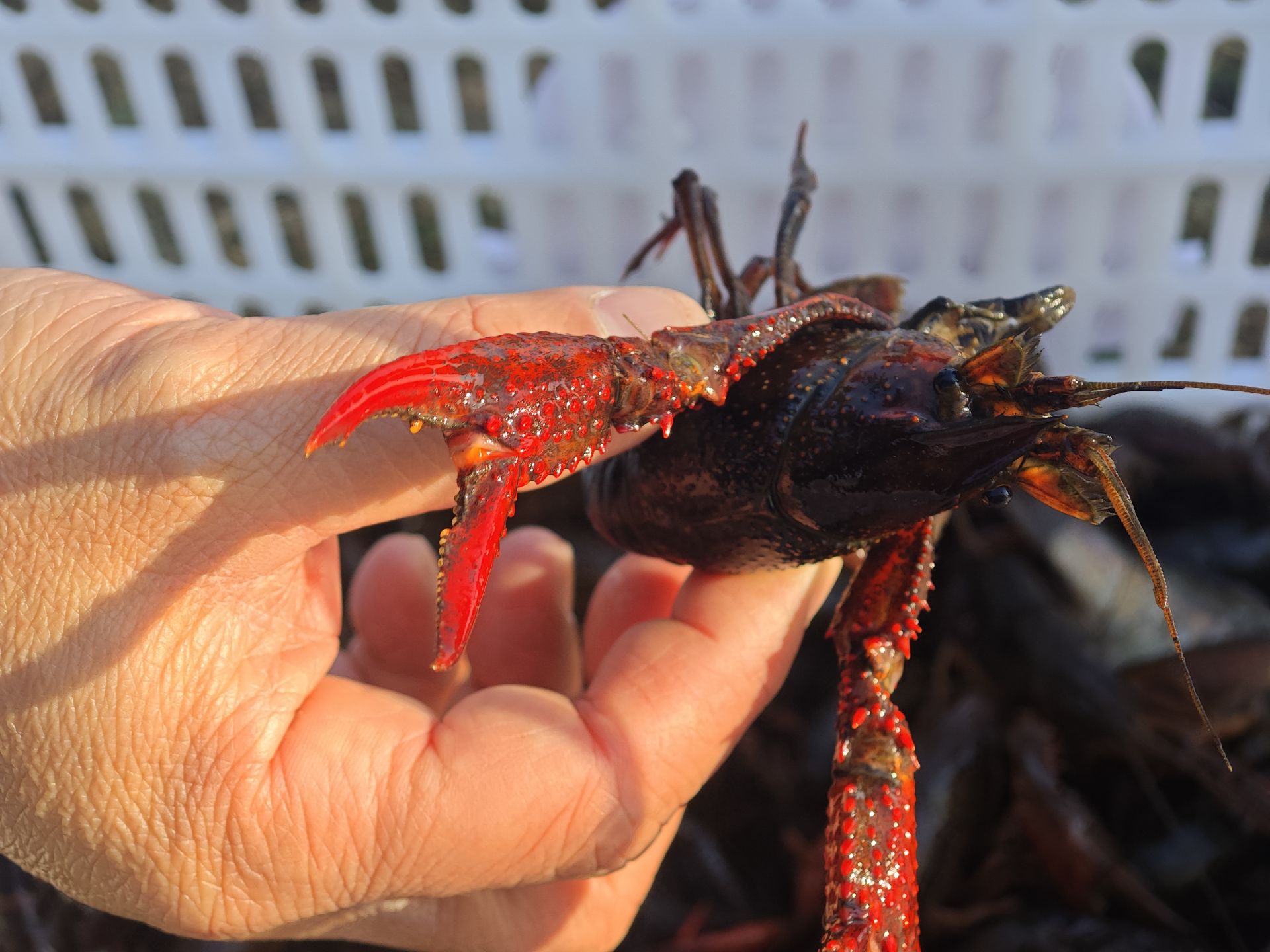 12月,当外面的世界银装素裹时,我已经长成了一只威风凛凛的“大虾”。我的壳是深红色的,我的螯足粗壮有力,我的腮部洁白如雪,那是品质优良的证明。