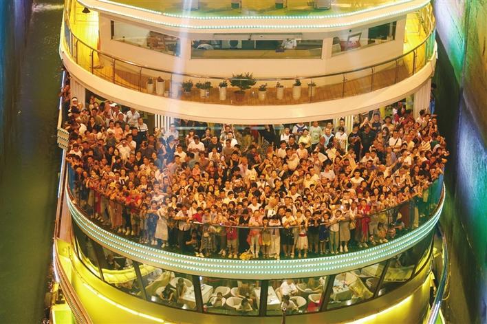 图为客船经过葛洲坝三号船闸。 通讯员 郑爽 摄