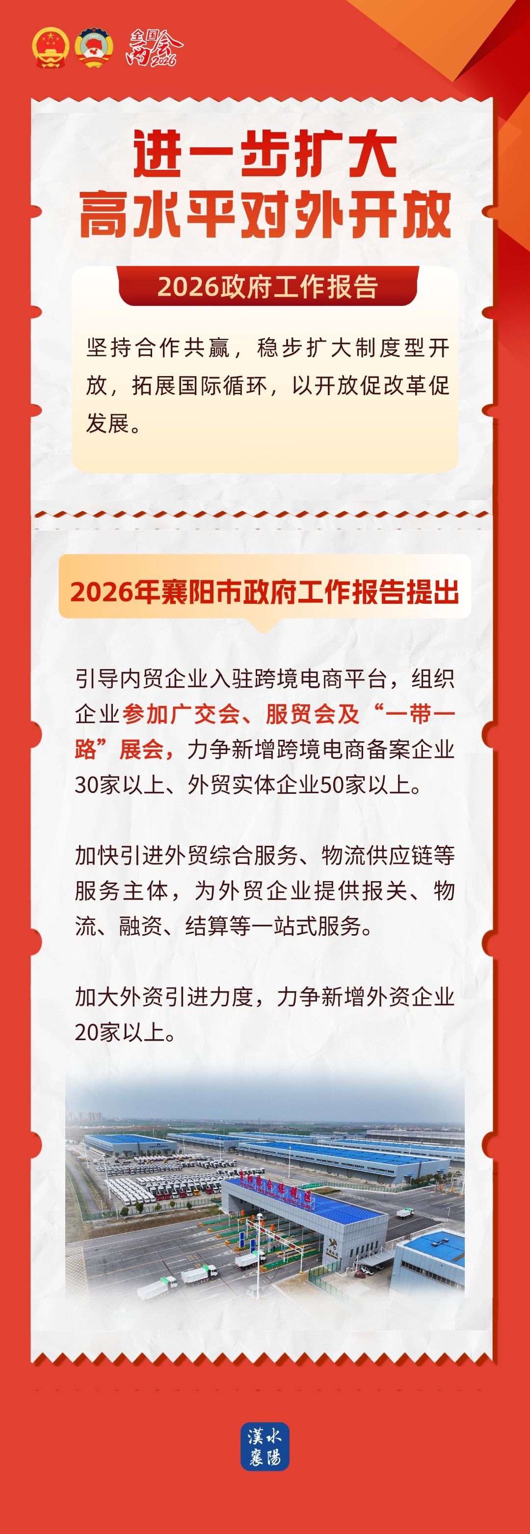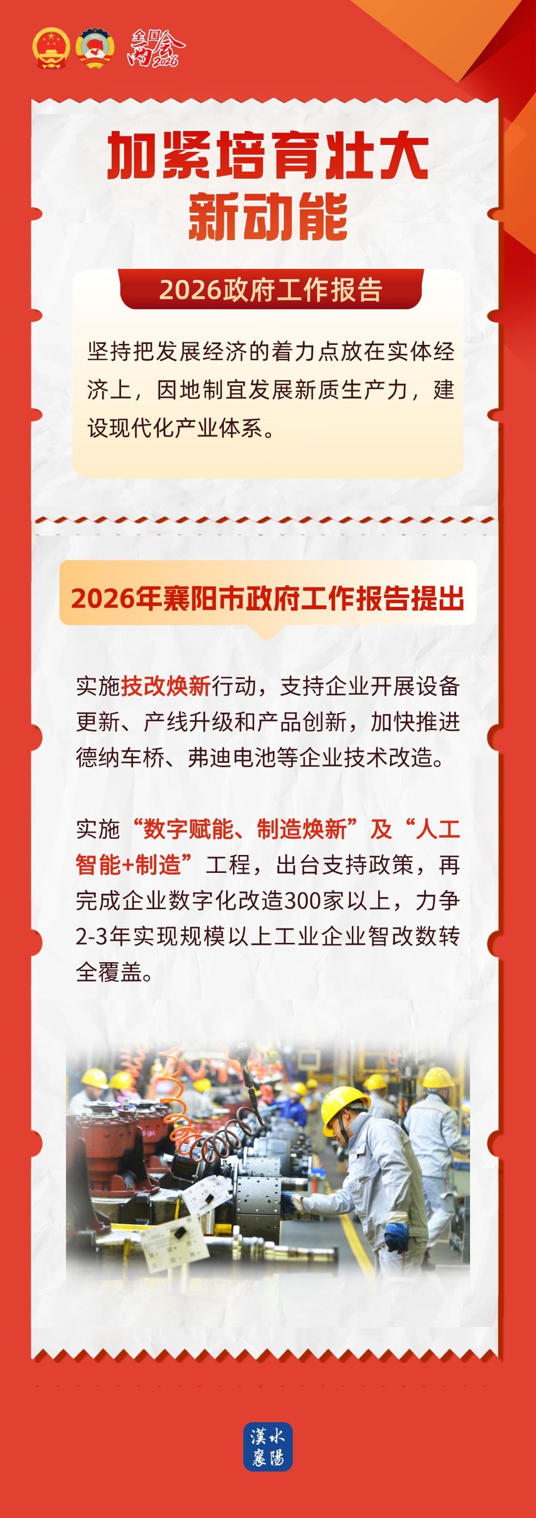 读政府工作报告,看襄阳2026 2026-03-07 18:03 汉水襄阳 0 3月5日上午 十四届全国人大四次会议在北京开幕 国务院总理李强作政府工作报告 明确2026年发展主要预期目标 提出2026年工作任务 对标部署,立足实际 2026襄阳怎么干,一起来看 ↓↓↓ 制作:施静文 汪锐 李春辉
