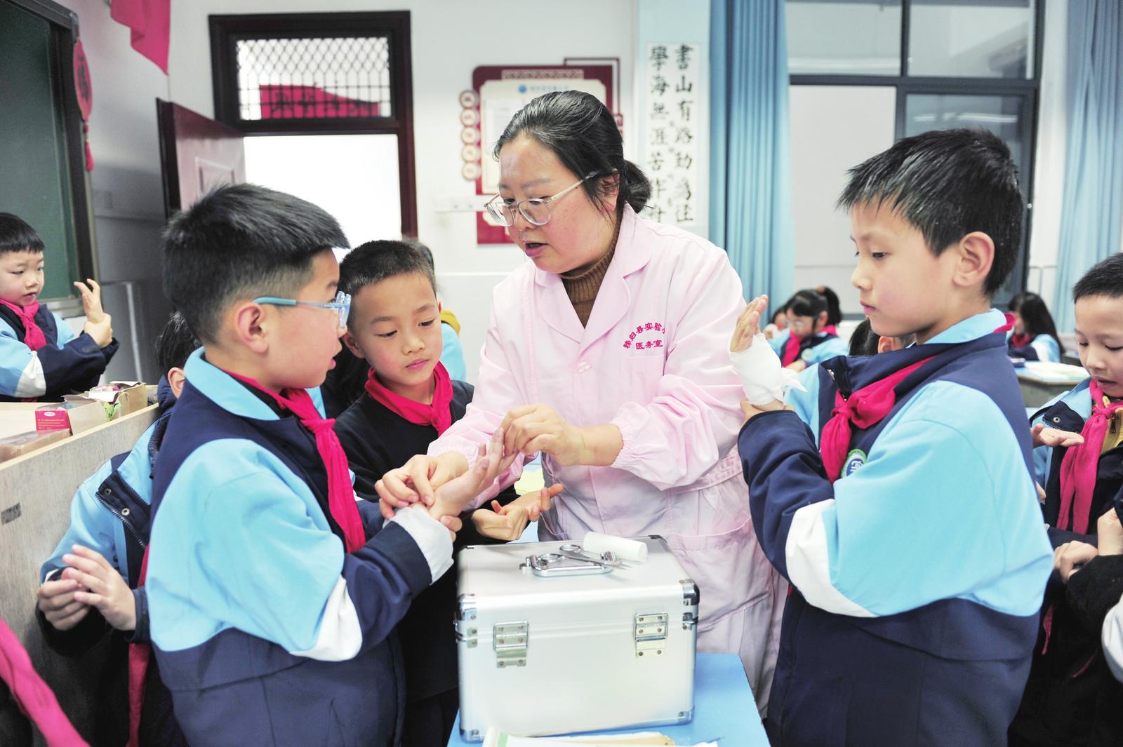 安全教育进校园 2026-03-31 14:33 新华社 0 3月30日是第31个全国中小学生安全教育日,各地中小学开展形式多样的安全教育进校园活动。图为秭归县实验小学校医在教学生们救护包扎知识。 新华社发(王辉富摄)