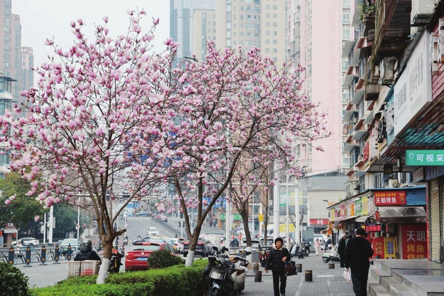 伍家岗区中南路南段,盛开的玉兰花为春日的城市换上了素雅新装。 (记者黄翔 摄)