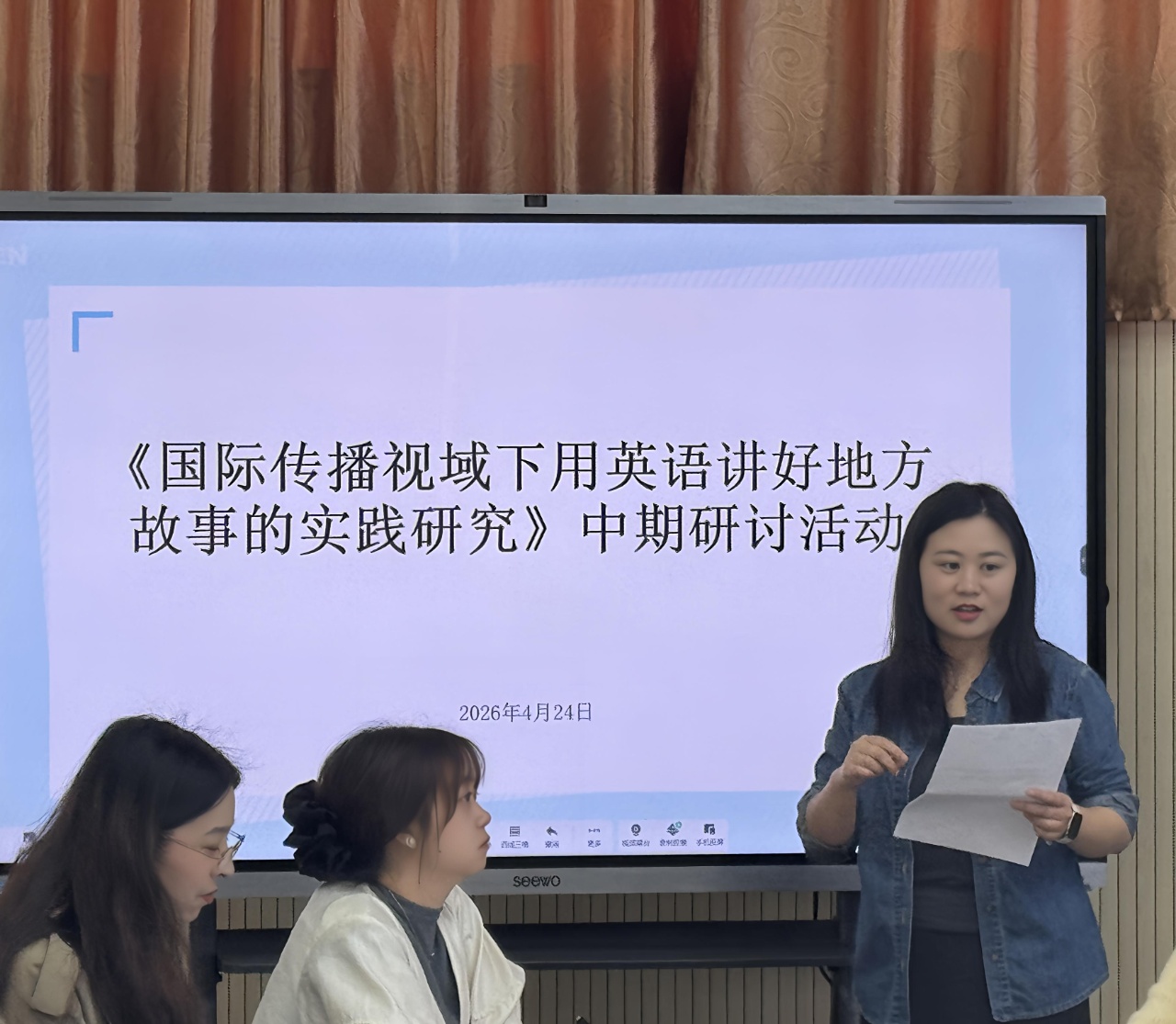 4月24日,夷陵区小学英语市级重点课题《中国文化国际传播视域下用英语讲好地方故事的实践研究》中期研讨活动在小溪塔三小成功举办。全区各课题实验校英语骨干教师及课题核心成员齐聚现场,全面复盘课题中期实施情况,系统部署下一阶段研究工作。