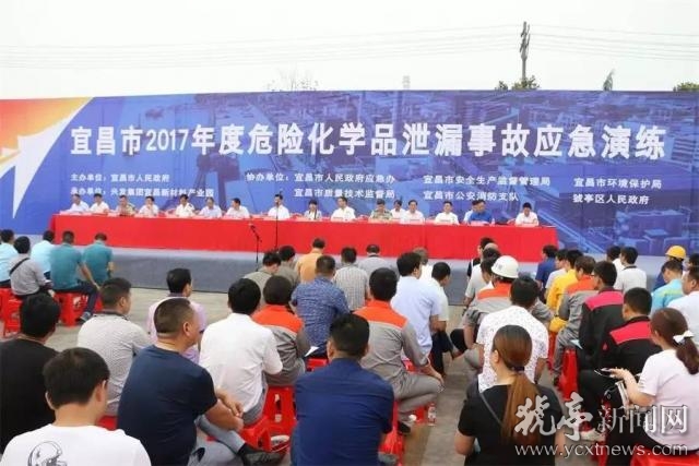 本网讯(程伟、蔡晓舒)“报告!C区罐区出现液氨泄漏,现场已警戒,人员已撤离……”“立即启动公司应急预案,迅速向园区安委会汇报!”6月22日上午9时,在兴发集团宜昌新材料产业园泰盛公司C区液氨灌区内,宜昌市2017年度危险化学品泄漏事故应急演练正在这里紧张有序的进行。