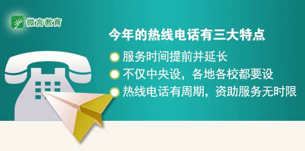 这是教育部连续第13年开通高校学生资助热线电话,今年提前25天开通热线电话,服务期限由原来的1个月延长至52天。