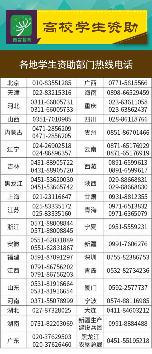各省资助热线是多少?赶快点开查阅吧。