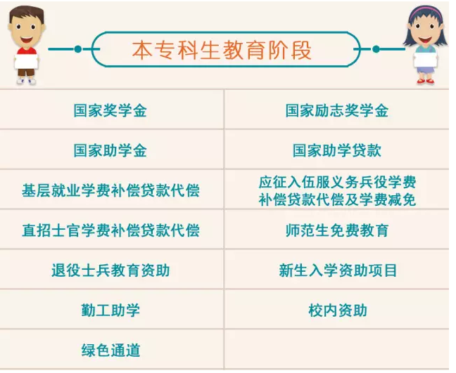 资助热线介绍完了,赶紧看看2017最新学生资助政策。在高等教育阶段,我国已建立起国家奖学金、国家励志奖学金、国家助学金、国家助学贷款、新生入学资助、勤工助学、学费减免、补偿代偿、“绿色通道”等多种方式并举的混合资助政策体系,确保家庭经济困难学生“三不愁”,即:入学前不用愁、入学时不用愁、入学后不用愁。