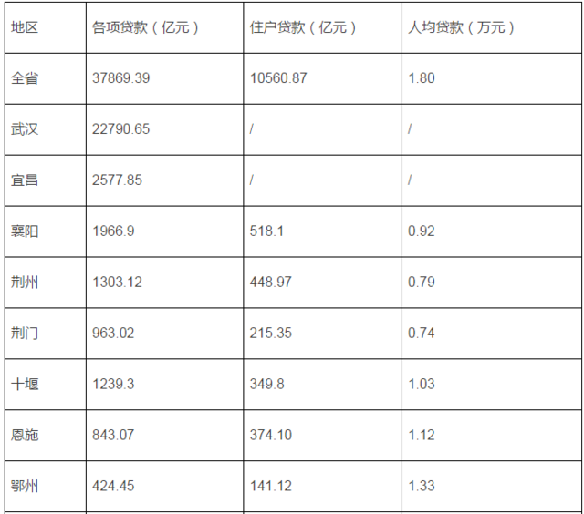 统计部门还发布了贷款数据,截至2017年6月末,湖北全省各项贷款余额达到37869.39亿元,其中住户贷款10560.87,湖北人均贷款1.8万元。