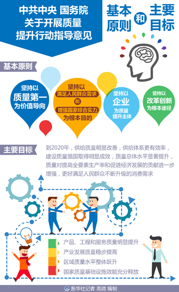 新华社12日受权播发《中共中央国务院关于开展质量提升行动的指导意见》。意见提出到2020年,我国供给质量明显改善,供给体系更有效率,建设质量强国取得明显成效,质量总体水平显著提升。