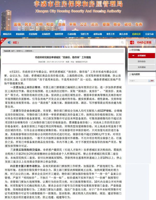 13日,孝感市政府召开“控房价、稳市场”工作专题会议决定,对孝感城区购房实行限购限贷。