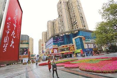 万盆鲜花点缀解放路步行街。 记者 黄余洋 摄