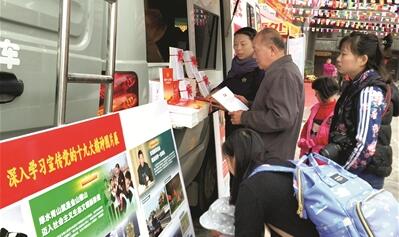 11月12日,夷陵区青少年活动中心“党的十九大精神宣传小分队”将科普大篷车开进宜昌第32届菊花展的主办地龙泉镇。现场摆放的《中国共产党章程》、党的十九大报告单行本等十九大学习辅导资料及学习宣传党的十九大精神图片展,让游览菊展的游客面对面了解党的十九大精神。 本报通讯员 陈新峤 摄