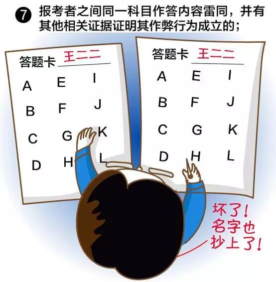 报考者之间同一科目作答内容雷同,并有其他相关证据证明其作弊行为成立的,视具体情形按照本办法第七条、第八条的规定处理。