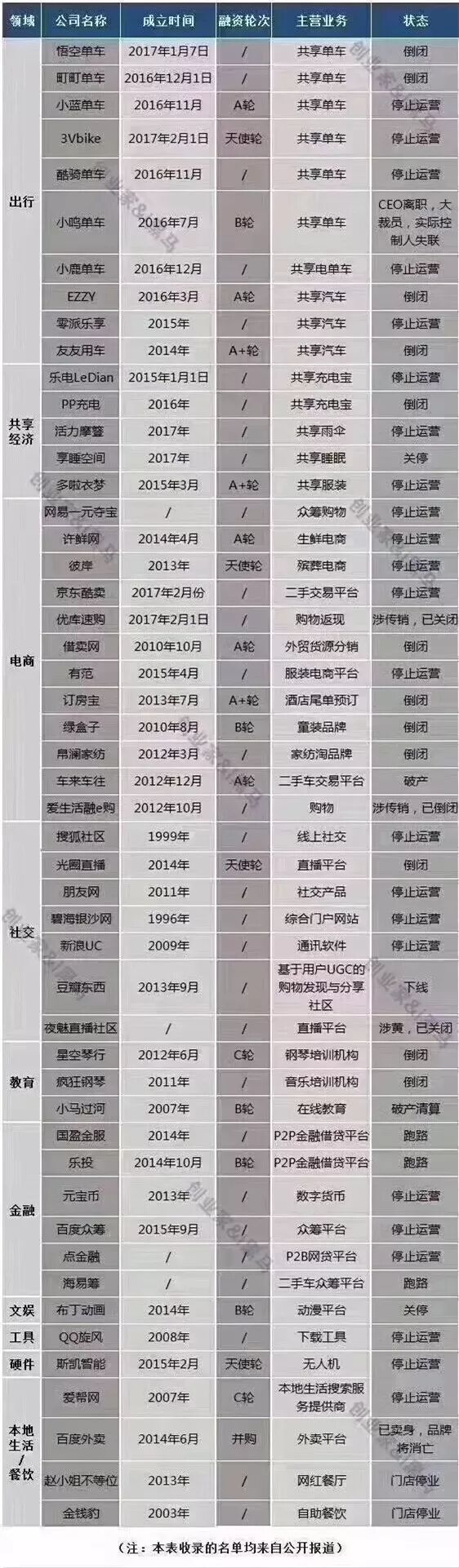 在历经一年多爆发式增长后,“共享们”今年猛然刹车,沦为死亡重灾区。截至目前,共有19家投身共享经济的企业宣告倒闭或终止服务。其中包括7家共享单车企业、2家共享汽车企业、7家共享充电宝企业、1家共享租衣企业、1家共享雨伞企业和1家共享睡眠仓企业。