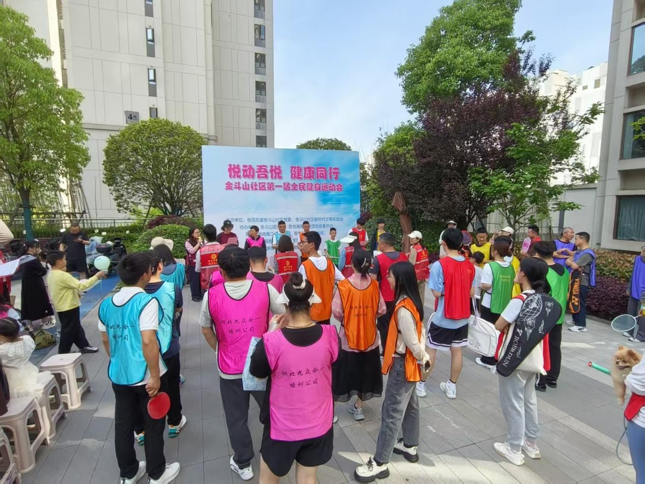 4月19日上午,由金斗山社区主办,吾悦广场商圈工会联合会、吾悦商圈妇女小组、宜昌新城吾悦商业管理有限公司共同协办,吾悦华府物业服务中心承办的金斗山社区首届全民健身运动会在吾悦华府小区中心广场热烈举行。活动以“悦动吾悦·健康同行”为主题,吸引了辖区百余名居民踊跃参与,现场气氛热烈、秩序井然、暖意融融,充分展现了金斗山社区共建共治共享的蓬勃活力与新时代文明实践的扎实成效。