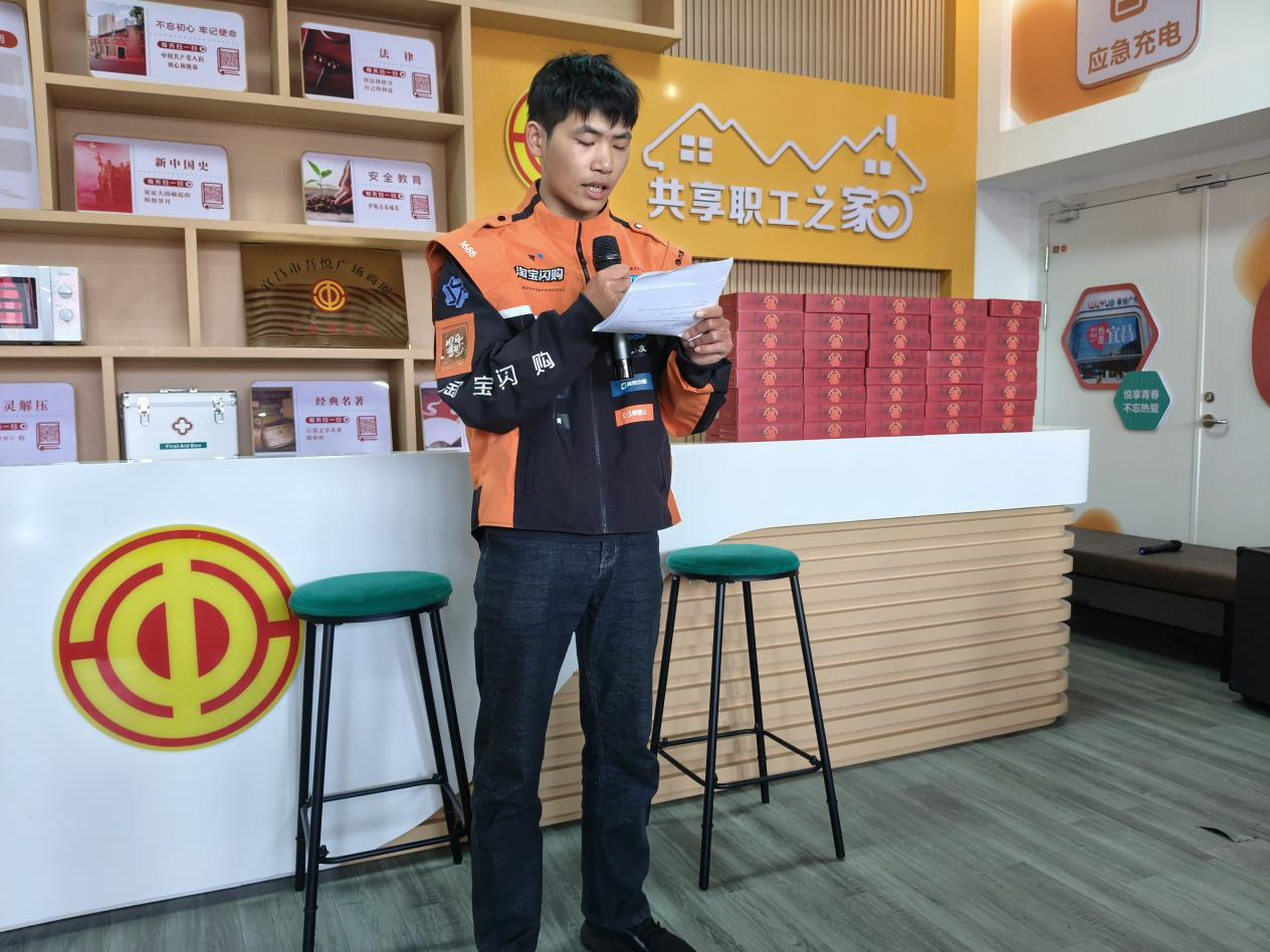 针对新就业形态劳动者流动性强、归属感弱的特点,活动特别设置“新声·新读”环节。新就业群体顾龙胜现场分享《活着》选段,用朴实语言讲述奔波路上被文字照亮的瞬间。